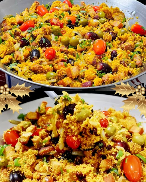 Essa farofa é extremamente versátil e combina com praticamente todos os pratos da ceia.